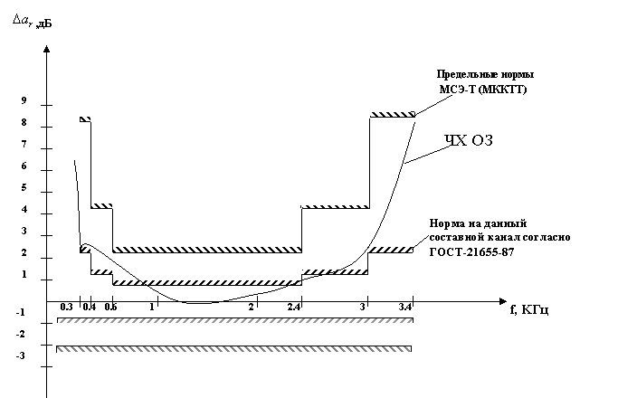 Вывод: полученная ЧХ ОЗ удовлетворяет предельным требованиям МСЭТ(МККТТ). Однако не удовлетворяет требованиям ГОСТа.