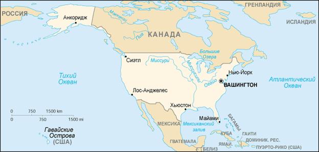 Так же США имеют ряд владений: Пуэрто-Рико и Виргинские острова в Карибском море, Восточное Самоа, Гуам, Мидуэй, Уэйк и др. в Тихом океане.