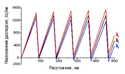 Один из недостатков использования волокна DCF для компенсации дисперсии заключается в волновой зависимости хроматической дисперсии D(l). В линейном приближении эту зависимость описывает параметр S - наклон дисперсионной кривой. Компенсация дисперсии, например, статическим методом на одной длине волны приведет к неточной компенсации на других длинах волн в системах DWDM.
