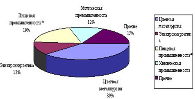 В структуре отраслей промышленности ведущее место занимают цветная металлургия (39%), электроэнергетика (13%), пищевая промышленность, включая рыбную (19%), химическая промышленность (12%). Мурманская область располагает собственным сельскохозяйственным производством, решающим частично проблему снабжения северян свежими продуктами питания. Однако природно-климатические условия Заполярья весьма ограничивают потенциальные возможности местного сельского хозяйства. Площадь сельскохозяйственных угодий области составляет 23,4 тыс. га, в том числе посевные площади - 12,5 тыс. га; основная их часть занята под кормовые культуры. Доля собственного производства продовольствия в общем фонде потребления составляет: по мясу -17,8%, молоку - 16,6%, овощам - 8,3%.