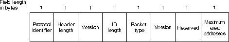 Следующим полем общего заголовка является поле длины заголовка (header length). Это поле содержит фиксированную длину заголовка. Эта длина всегда равняется 8 байтам, но она включена таким образом, чтобы пакеты IS-IS незначительно отличались от пакетов CLNP.