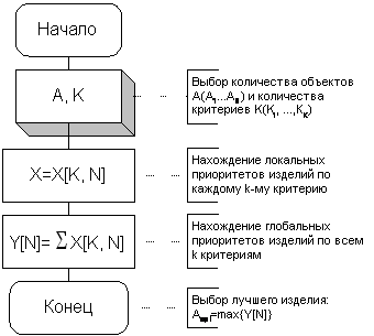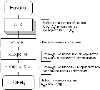 Рисунок 2. Алгоритм выбора лучшего изделия по неравнозначным критериям