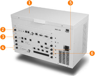 Шасси системы NBX 100 представляет собой компактный блок с 6 разъемами расширения, который можно монтировать в стандартную 19-дюймовую компьютерную стойку или на стену. В состав шасси входят: Средства поддержки подключения к локальной и распределенной сети, встроенные средства расширения Кабель питания Разъем для соединения нескольких шасси в цепочку для упрощения расширения Универсальные слоты расширения, обеспечивающие удобное расширение системы