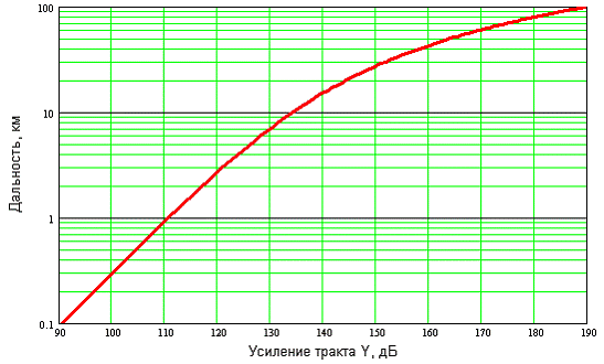 Порядок расчета: вычисляется Y и по графику определяется дальность.