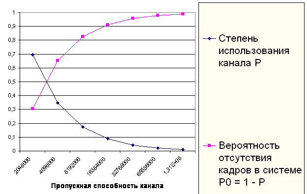 Степень использования канала P вероятность отсутствия кадров в системе P0.