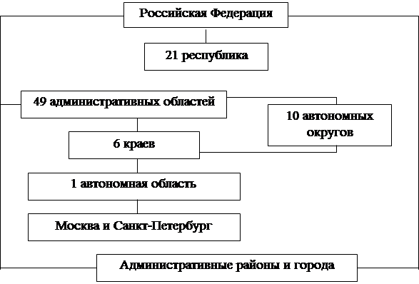 В национальных районах на окрайных территориях были созданы союзные республики – Украинская, Белорусская, республики Закавказья, Казахстан, Средняя Азия, а затем Молдавская и республики Прибалтики. Союзной республикой стала Россия, ей был дан статус федеральной республики, т.к. на ее территории, в районах компактного проживания отдельных национальностей были образованы автономные республики, а в ряде областей и краев – автономные области и автономные национальные округи.