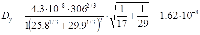 Для расчета коэффициента массоотдачи, найдем значения коэффициентов молекулярной диффузии по уравнению:[5.3.1]