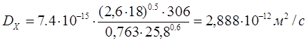 Коэффициент диффузии Dx в разбавленных растворах можем вычислить по уравнению [4.4.2]