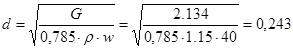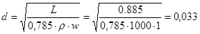Выберем значение w для абсорбента, равное 1 м/с. Тогда диаметр штуцера будет: