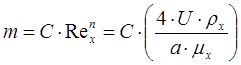 -- модифицированный критерий Рейнольдса для стекающей по насадке пленки жидкости;