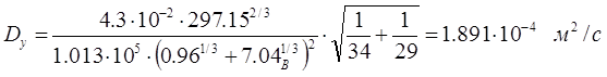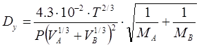 Коэффициент диффузии компонента газовой фазы А в газе В можно рассчитать, пользуясь полуэмпирической зависимостью [1,3]
