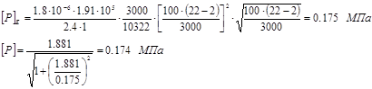 а допускаемое давление из условия устойчивости в пределах упругости определяется по формуле: