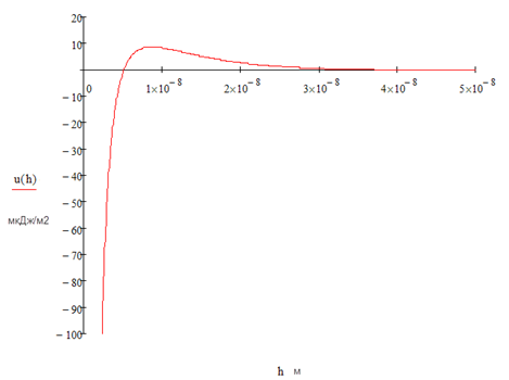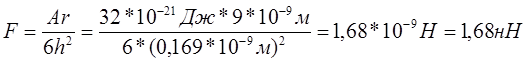 где А – константа Гамакера для данной системы (константа дисперсионного взаимодействия молекул фаз), r – радиус частицы, h – расстояние между поверхностью сферической частицы и плоской поверхностью.