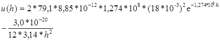 3. Рассчитать потенциальную энергию u взаимодействия двух плоскопараллельных пластин, находящихся в водном растворе электролита с концентрацией с, при значении потенциала диффузного слоя φs, относительной диэлектрической проницаемости εr и температуре t. При расчете принять константу Гамакера А* = 3.0·10–20 Дж. Вычисления сделать для расстояний между пластинами h: 2, 5, 10, 15, 25, 50 нм. Построить график зависимости u = f(h).