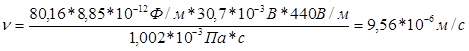 где er – относительная диэлектрическая проницаемость среды, e0 – электрическая постоянная (диэлектрическая проницаемость вакуума), η – вязкость среды, ζ – электрокинетический потенциал.