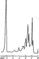 Рис. 8. Хроматограмма натурального кофе, полученная на колонке размером 150х4,6 мм с нуклеосилом С8 (5 мкм), подвижная фаза — метанол — 0,01 М фосфатный буферный раствор с рН 7,0 (20:80), расход 1,2 мл/мин, давление 12 МПа, температура 25 °С, детектор Уф (280 нм), проба 20 мкл: 1 — кофеин