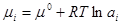 - равновесный и стандартный химический потенциал компонента i; ln ai- логарифм активности i –го компонента). Тогда уравнение Гиббса будет выглядеть так