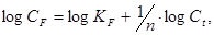 KF и 1/n – константы, определяемые отрезком на оси ординат, отсекаемым касательной, проведенной к начальному участку кривой, и углом наклона, соответственно.