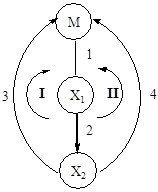 Скорость второго маршрута включает стадии первого маршрута и концентрацию, стоящую в первой вершине Х0.