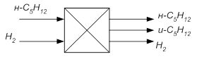 Для изомеризации н-пентана в изопентан вычислить перепад температур в зоне реакции при адиабатическом ведении процесса. Процесс протекает при давлении 1 атм. В реактор подается 10 т/час н-пентана при 650К и 25 молей водорода на 1 моль пентана при 900К. Степень конверсии н-пентана 10, 20, 50, 70%. Селективность процесса 100%. Потери тепла в окружающую среду составляют 3% от прихода тепла в реактор. Провести графическую и аналитическую зависимости адиабатического перепада температур от степени конверсии н-пентана. Аргументировать технологические приемы, используемые при осуществлении промышленной изомеризации углеводородов.