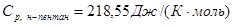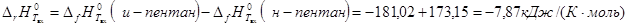определено для Твх из полиномного уравнения для Ср н-пентана с помощью функции «Поиск решения» программы «Microsoft Excel»;