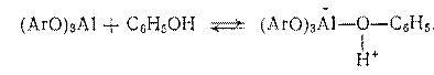 Катализ фенолятом алюминия объясняют его строением как апроторной кислоты, способной образовывать с фенолом комплекс, имеющий значительную кислотность: