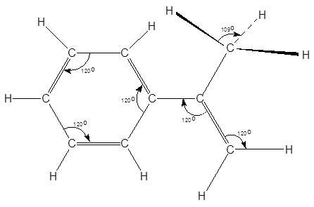 Углеродный скелет молекулы a-метилстирола лежит в плоскости бензольного кольца