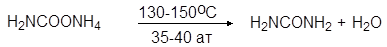 В промышленности мочевину получают из двуокиси углерода и аммиака через карбамат аммония, который при 130-150оС и давлении 35-40 ат дегидратируется: