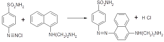 Последнее вступает в реакцию сочетания с N-( 1-нафтил) -этилендиаминдигидрохлоридом с образованием азокрасителя пурпурного цвета: