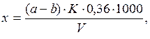 где а - объем 0,02 н. серной кислоты, израсходованной на титрование пробы, мл; b - объем той же кислоты, израсходованной в холостом опыте, мл; К - поправочный коэффициент для приведения концентрации серной кислоты к точно 0,02 н.; V - объем сточной воды, взятой для анализа, мл, V1 - объем отобранной аликвотной части; 500 - вместимость мерной колбы, мл; 0,36 - количество NH+4, эквивалентное 1 мл точно 0,02 н. серной кислоты, мг.