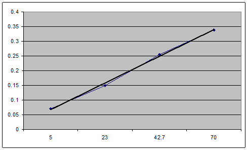 Перед окрашиванием анализируемого раствора необходимо приготовить шкалу стандартных растворов для получения градуировочной кривой. С этой целью в мерные колбы вместимостью 50 мл. приливают по 2 мл. 0,6 н. K2SO4, что обеспечит концентрацию сульфата калия в находящемся в колбе растворе приблизительно такую же, какую получают при анализе 40 мл K2SO4-вытяжки. Затем в каждую из колб с помощью бюретки приливают стандартный раствор с содержанием фосфора 0,005 мг P в 1 мл. В колбы добавляют 0,5; 1,0; 3,0; 5,0; 7,0 и 10,0 мл стандартного раствора. В колбы приливают дистиллированную воду приблизительно до объема 35 – 40 мл, реагент Б. Содержимое колб тщательно перемешивают, через 10 мин измеряют оптическую плотность и строят градуировочную кривую в координатах: оптическая плотность – количество фосфора в мерной колбе. По градуировочной кривой находят концентрацию фосфора в анализируемых растворах. Результаты анализа выражают в мг/л: