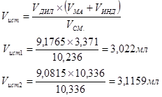 Исходя из объёма мономеров в реакционной смеси находим для опытов 1 и 2 (смеси I и II):