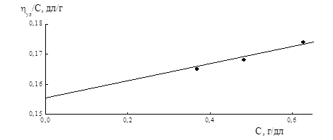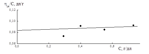 Рисунок 5.8. Зависимость ηуд/С-С раствора сополимера индена с малеиновым ангидридом (СПЛ 3) в ацетоне