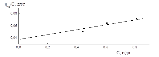 Таблица 5.14 – Данные определения вязкости растворов в ДМСО сополимера индена с МА, полученного из смеси IV из ампулы 8 (СПЛ 11)