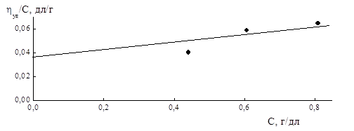 Рисунок 5.13 – Зависимость ηприв – С, растворов сополимера индена с МА, полученного из смеси IV из ампулы 7