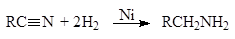 Нитрилы легко гидрируются в амины. Гидрирование осуществляется или водородом в момент выделения (С2Н5ОН + Na) или каталитически: