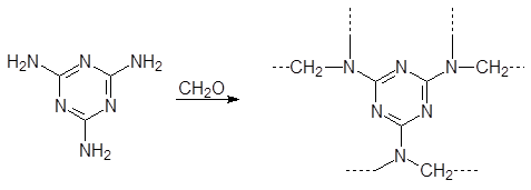 Путем конденсации меламина с формальдегидом получают меламиноформальдегидные смолы: