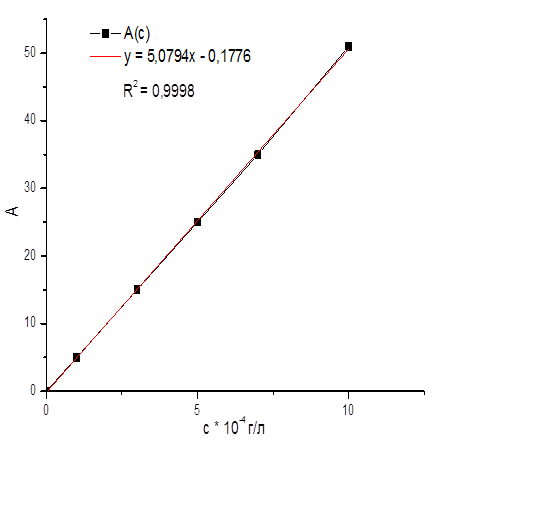 Рисунок 2.5. График зависимости светопоглощения от концентрации раствора.