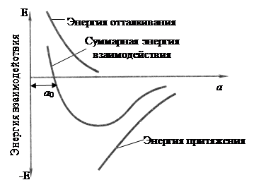 Рисунок 1. Энергетические условия взаимодействия атомов в кристаллической решетке вещества