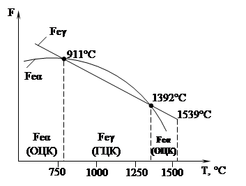 Рисунок 3. Полиморфизм железа и его связь со свободной энергией системы