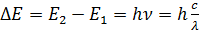 где Е2,Е1 – энергия верхнего и нижнего уровня; ν – частота; с – скорость света; λ – длина волны излучения; h – постоянная Планка.