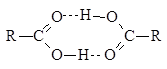 Гидроксильная группа в карбоновых кислотах образует водородные связи, причем более прочные, чем в спиртах. Кроме того, в карбоновых кислотах в образовании водородной связи может участвовать карбонильная группа. В твердом и жидком состоянии кислоты существуют в основном в виде димеров: