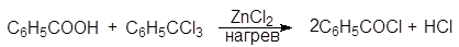 или из бензойной кислоты и бензотрихлорида при 120-130 оС в присутствии кислот Льюиса: