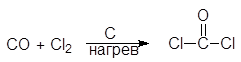 Хлорангидрид угольной кислоты - дихлоркарбонил (фосген) получают из СО и Cl2 под действием света (Деви, 1812 г). В промышленности эту реакцию проводят при температурах 100-200 оС в присутствии активированного угля как катализатора: