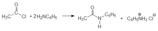 Для получения амида в раствор аммиака осторожно прикапывают хлорангидрид кислоты. Реакция ацетилхлорида с анилином