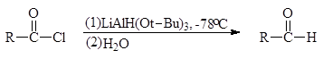 Восстановлением хлорангидридов карбоновых кислот литийтри-трет-бутоксиалюминийгидридом получают альдегиды.