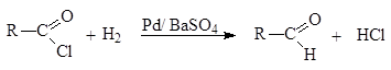 Хлорангидриды кислот могут быть превращены в альдегиды гидрированием в присутствии палладия, нанесенного на сульфат бария. Катализатор дезактивируют добавками хинолина с серой или тиомочевиной.