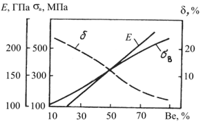 Зависимость механических свойств сплавов Al–Be от содержания Be
