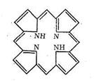 Как видно из схемы, порфирин представляет собой пример макро-циклического лиганда с четырьмя донорными атомами азота, которые координируются ионами металла, если создаются условия для вытеснения двух протонов порфирина и замещения их на ионы металла. Размер полости порфирина составляет около 2Ǻ (диаметр). Порфирин принадлежит к числу «жестких» лигандов, структура которых (и размер полости) мало зависит от природы координируемого иона металла. Порфириновые металлоциклы содержатся в хлорофилле и гемоглобине. Строение порфиринсодержащих комплексов биометаллов будет рассмотрено дальше.