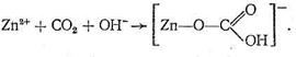 Рассмотрим предполагаемый «концертный» механизм действия карбоангидразы. Ион Zn2+, входя в состав несимметрично построенного координационного соединения (имеющего по этой причине напряженную структуру), обладает высокой реакционной способностью. Столкновение на активном центре карбоангидразы иона Zn2+, СО2 и иона ОН - в полости карбоангидразы приводит к активации всех участвующих в реакции веществ, в результате чего быстро образуется бикарбонат цинка: